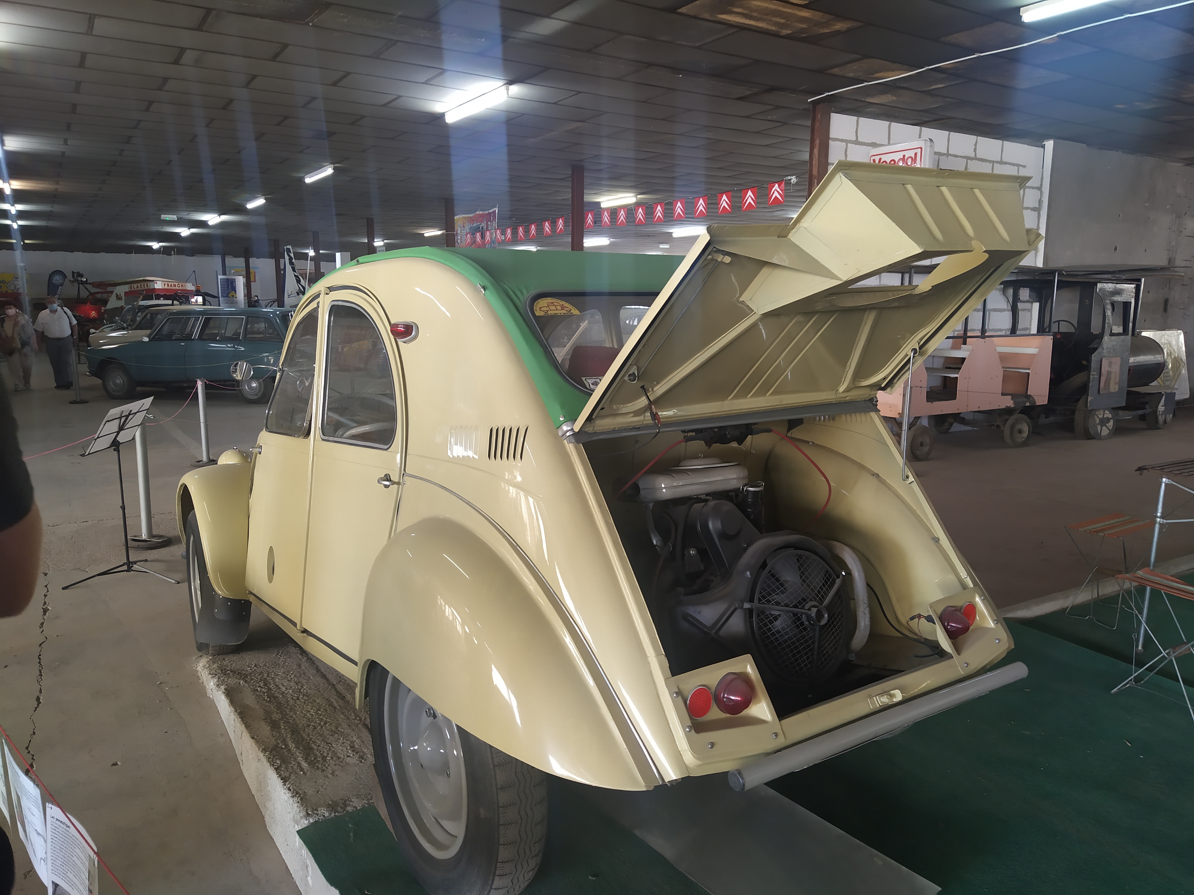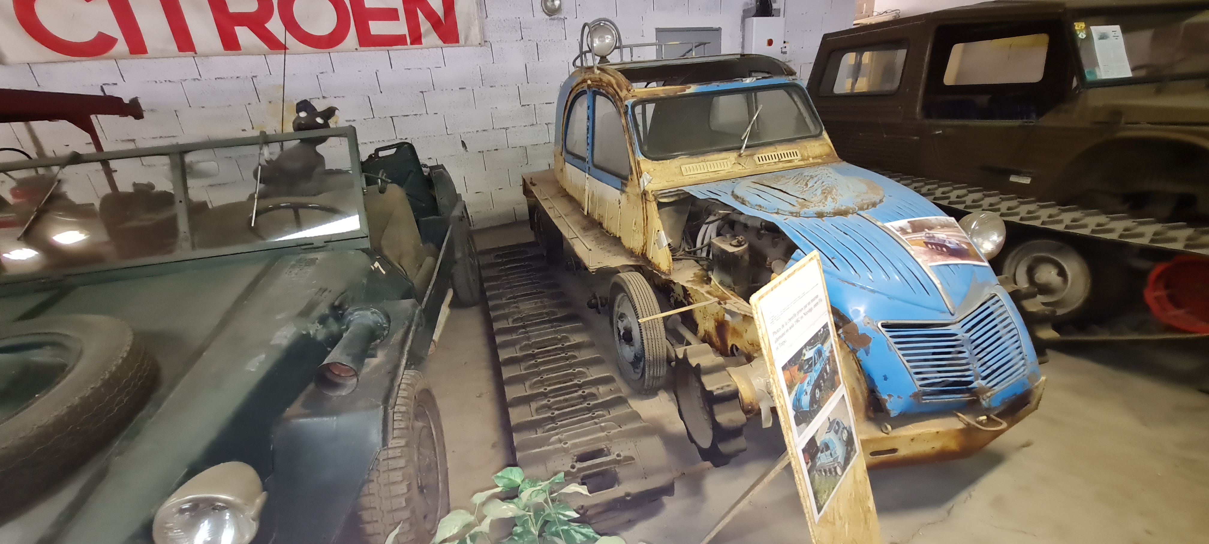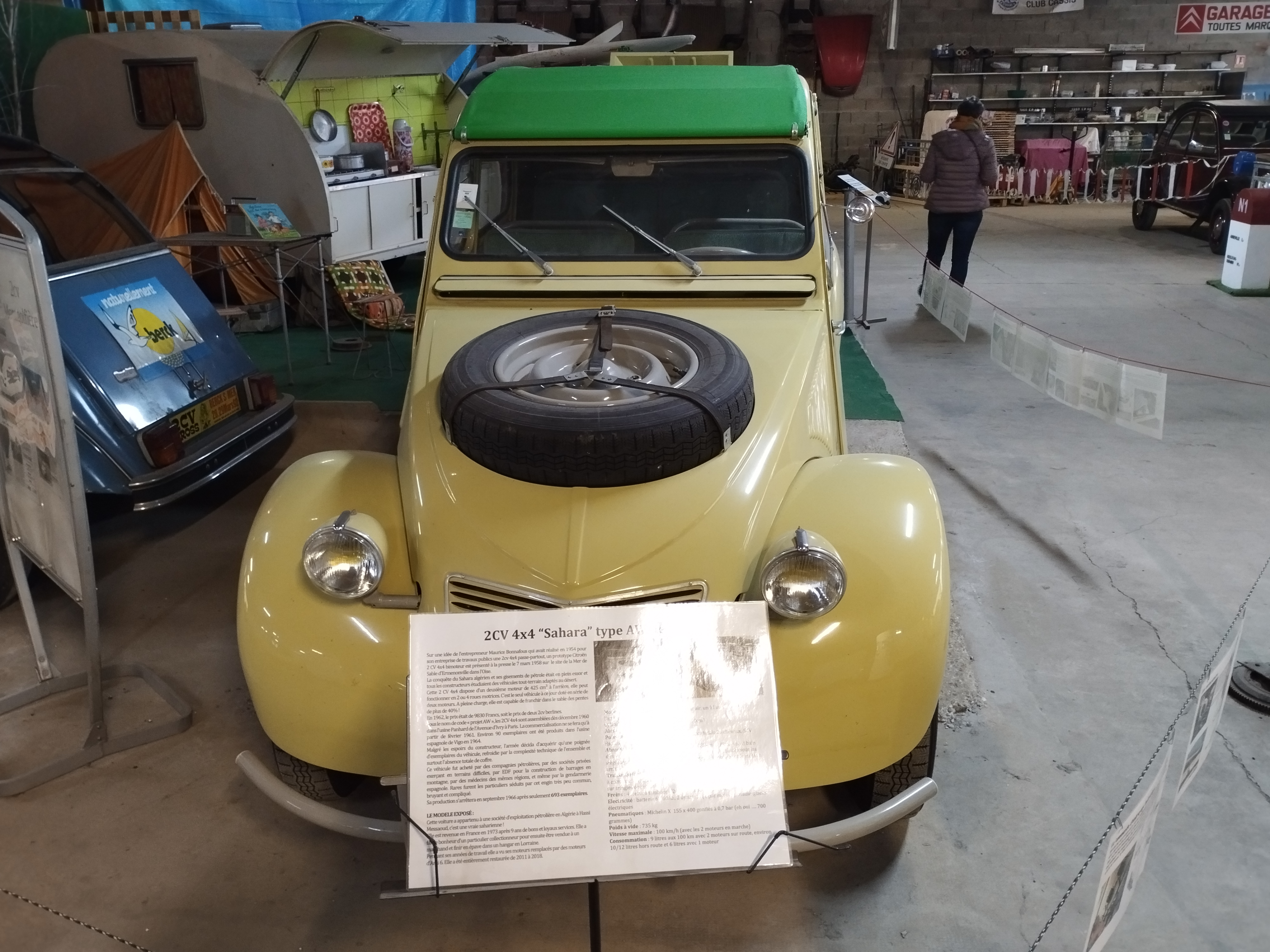 Association de bénévoles visite gratuite, différentes 2cv, dyane et méhari et surtout une 2cv saharienne 4×4..... à voir et revoir visite accompagnée d'un passionné, superbe moment de partage et pleins d'étoiles dans les yeux......